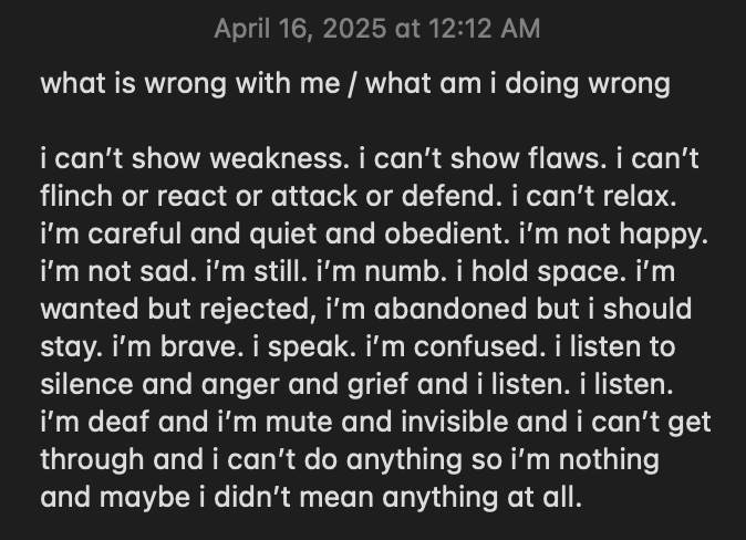 i wanted to end this by having a lighthearted funny quip about getting tons of reblogs in 2014 tumblr or maybe an insightful reflection or lessons learned on life and love but i don’t feel funny and i have more questions than i have answers. my prevailing feeling is confusion and helplessness. my hope is that clarity and ease come with time.
